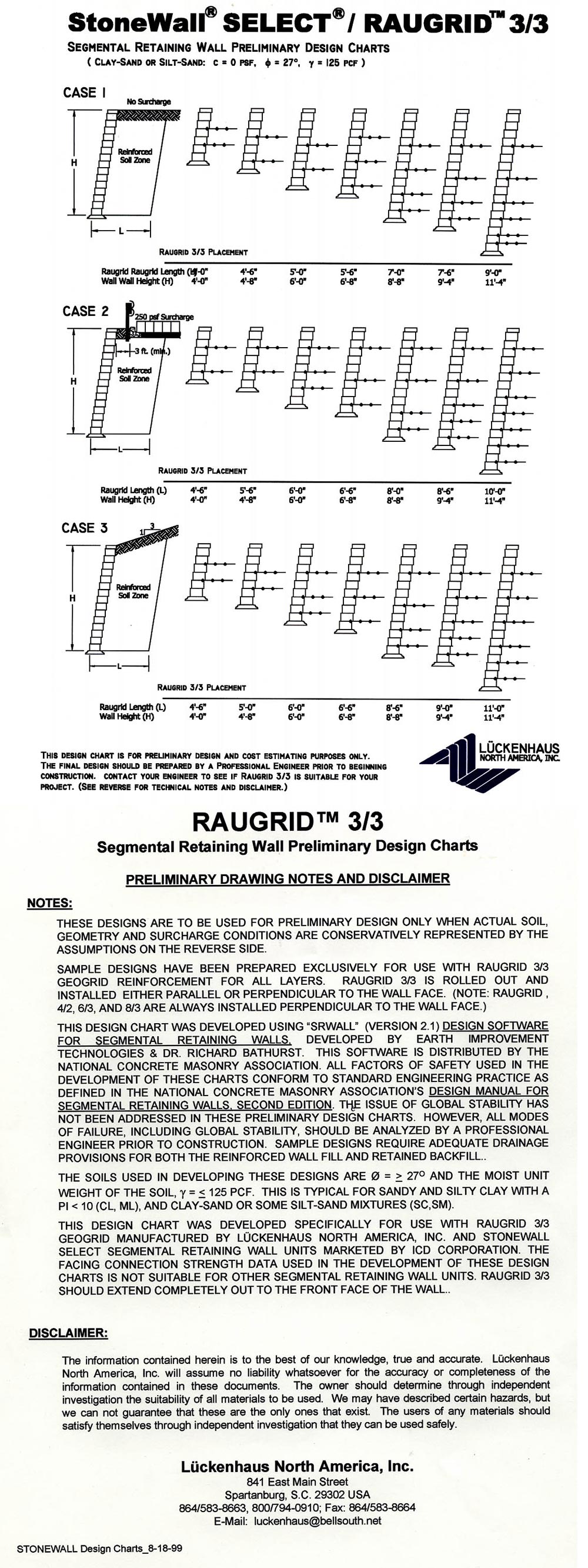 - Gravity Wall Chart shows maximum wall heights without geogrid (Acrobat PDF format) 188 KB