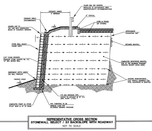 e completed this project in 1999, and paved directly to the back of the StoneWall SELECT units. The wall is performing as designed. No movement or settlement has occurred. The road carries extensive traffic and is in excellent condition through the area of this wall,” adds George Wochley.
