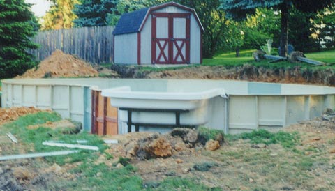 When the pool was installed, unforeseen issues clouded their joy. A steep 8’-10’ slope in their back yard and problems with stormwater run-off from a street and vacant property above hadn’t been adequately planned for by the pool installer. The pool was supposed to be in-ground, with a generous apron and patio. Instead the Hayters found much of the pool would be 3’ above grade, without support for the patio. Joe Hayter wondered if it would just collapse some day. According to Vickie and Joe Hayter, "there were times we wished we’d never gotten into this."
