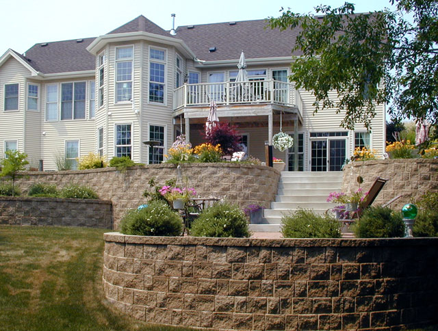 Dresen recommended the StoneWall® SELECT® SRW system from ICD Corporation, Milwaukee, WI. Many of his 100+ walls have used this system, and he knew a StoneWall SELECT wall would be attractive, strong, stable and long-lasting. “Strength and stability always come first,” he says, “pretty, weak walls serve neither the contractor nor the homeowner.” Other key factors included: