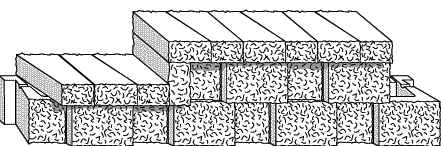 As the wall changes height, use either the 90 degree corner unit to provide a split finish (see illustration), or use an 8" long cap unit laid vertically to finish the end (see illustration), or turn a tight radius into the embankment. |