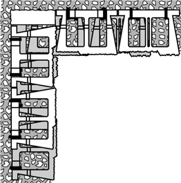 StoneWall SELECT corner units are specifically designed to allow construction of a true 90 degree corner, while retaining the randomly textured look of rough-hewn stone on the exposed corner faces. To build a 90 degree corner, begin construction at the corner and work out. To tie the corner to the wall use a concrete adhesive to bond the unit to adjacent StoneWall SELECT units. The concrete adhesive should be applied so that it is not exposed. See illustration at right. |