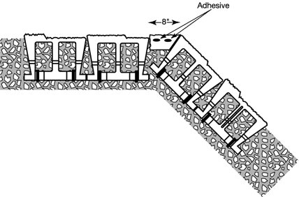 Place angle cut unit as shown. Place StoneWall SELECT unit against angle cut unit and a 45 degree angle is formed.