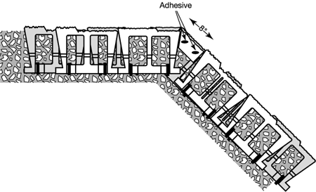 Proceed with additional courses, alternating the angle cut units, as shown. |
